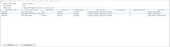 Đường dẫn: Nhân sự\ Cấp phát CCDC\ Cấp phát Công cụ dụng cụ
