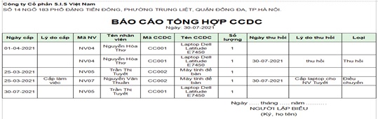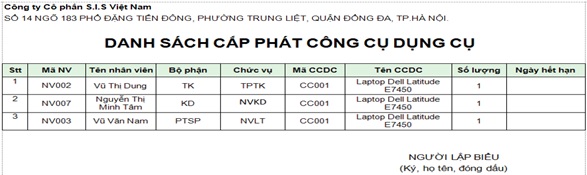 Đường dẫn: Nhân sự\ cấp phát CCDC\ Báo cáo tổng hợp CCDC