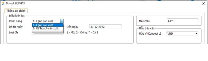 - Chức năng: Khi lệnh sản xuất, kế hoạch sản xuất đã thực hiện xong, chức năng này thực hiện việc đóng lệnh sản suất, kế hoạch sản xuất. Kết thúc một chu kỳ giá thành