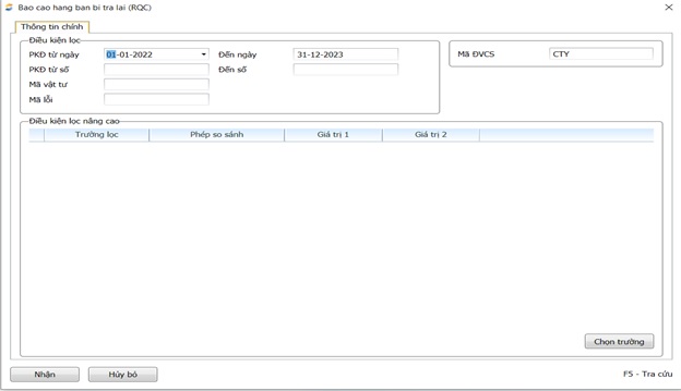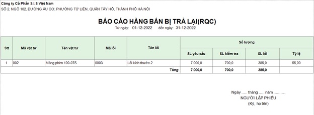 Báo cáo hàng bán bị trả lại (RQC)