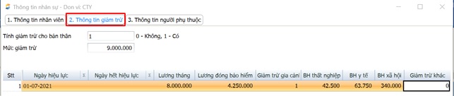 * Nhập thông tin giảm trừ gia cảnh