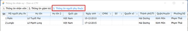 * Nhập thông tin người phụ thuộc