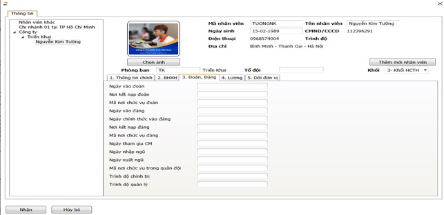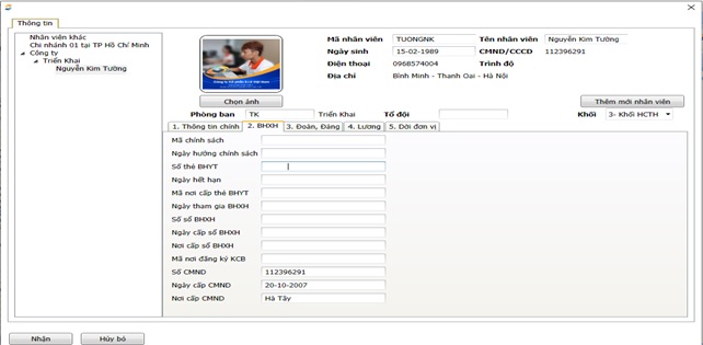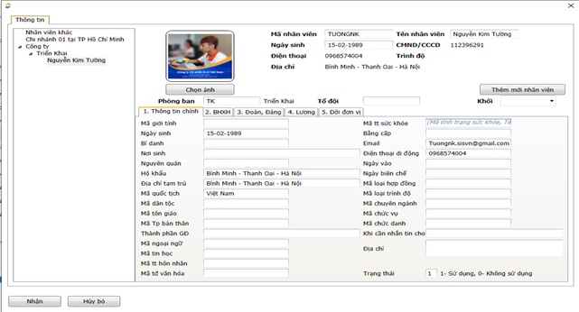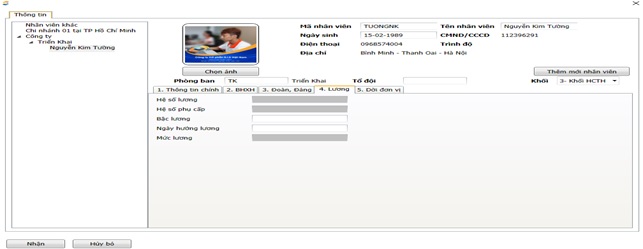 Đường dẫn: Nhân sự \ Cập nhật danh sách Nhân viên\ Cập nhật thông tin nhân viên