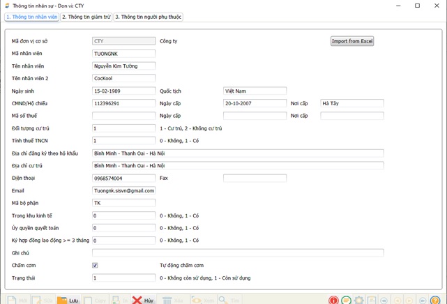 Những nhân viên sau khi được tuyển dụng vào công ty đã lưu thông tin trong danh mục “Nhân viên, đối tượng nộp thuế” sẽ được cập nhật thêm thông tin sơ yếu lý lịch chi tiết ở danh mục này.