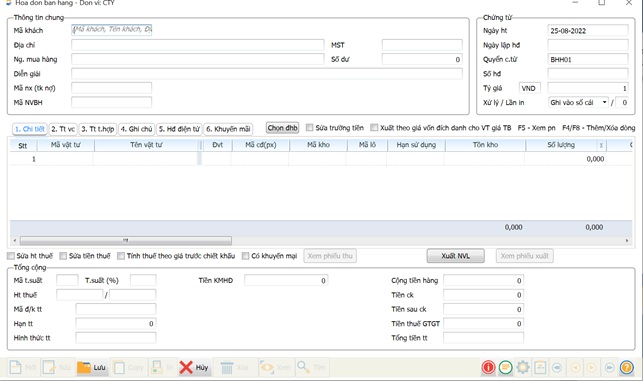 Chức năng: Lập chứng từ bán vật tư, hàng hóa có theo dõi về số lượng, giá cả, thuế GTGT đầu ra HĐBH cập nhật doanh số bán hàng, ghi nhận giá vốn, giảm trừ hàng tồn kho.