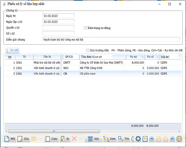 TH2: Xử lý số liệu chi hộ, nộp hộ công ty con – số liệu xử lý bút toán này người dùng tự nhập, không sử dụng khử trùng tự động