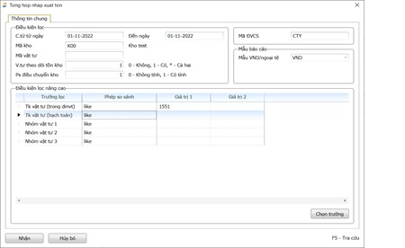 - SL tồn kho: Là số lượng tồn kho tại thời điểm lọc của vật tư