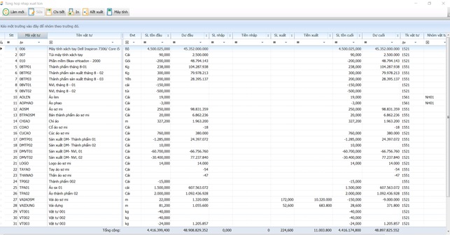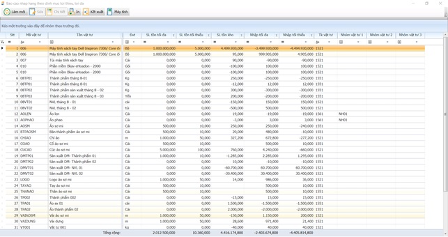 1.1. Báo cáo nhập xuất tồn
