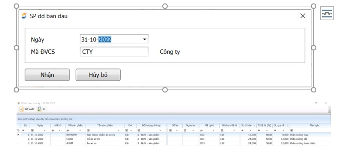 - Đường dẫn: Quản trị sản xuất/Quy trình sản xuất/Kế hoạch sản xuất/SP dd ban đầu