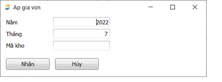- Click nút <<Áp giá vốn>>, chương trình sẽ hiển thị form cho phép bạn chọn tháng để áp giá vốn.