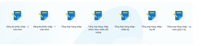 Gồm 7 báo cáo liên quan đến hàng nhập kho