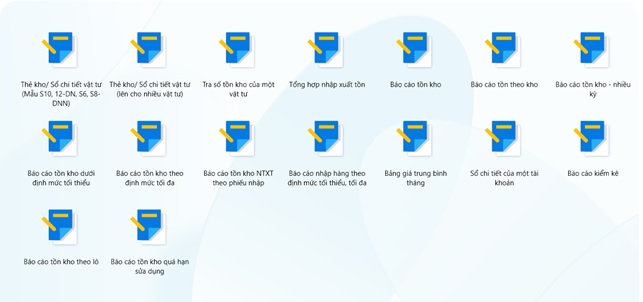 Gồm 16 báo cáo hàng tồn kho bao gồm: