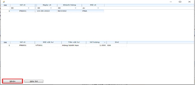 - Sau khi nhập các điều kiện và bấm “Nhận” Chương trình hiển thị danh sách các phiếu theo điều kiện đã chọn.