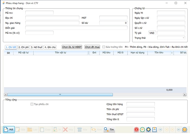 c. Cách thêm mới phiếu nhập hàng
