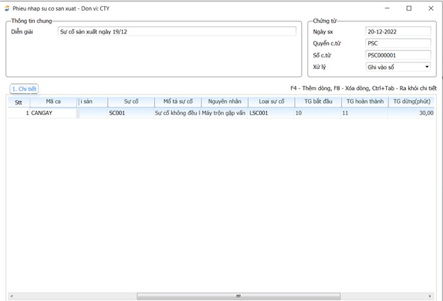 Chức năng : Phiếu nhập sự cố sản xuất cung cấp cho NSD bản ghi để lưu lại các sự kiện sự cố trong sản xuất với các thông tin về thông số kỹ thuật và hình ảnh lỗi.