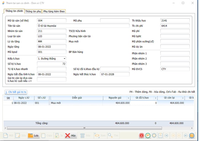 Mỗi khi nhập mới một Tài sản ngoài việc định khoản nợ, có hay theo dõi nhập xuất thì phải tạo mã danh mục tài sản mới để theo dõi riêng về phần tài sản và tính khấu hao cho tài sản đó.