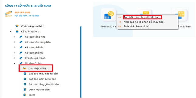 Đường dẫn: Kế toán quản trị\Tài sản cố định\ Cập nhật số liệu\Tính khấu hao
