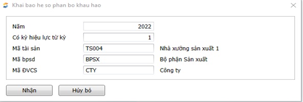 2.7.2.3.2 Khai báo hệ số phân bổ khấu hao