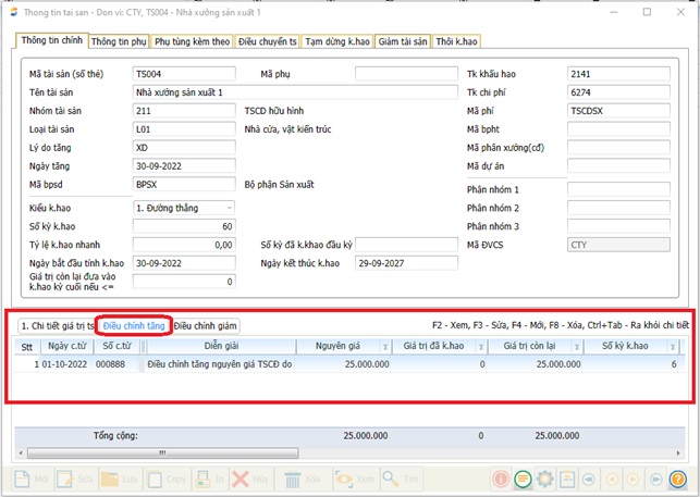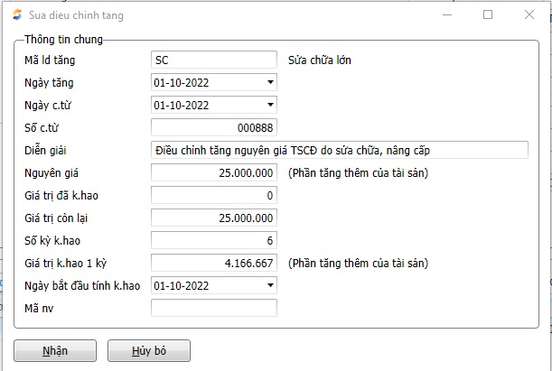 2.7.2.4.1 Khai báo điều chỉnh Tăng/Giảm giá trị TSCĐ