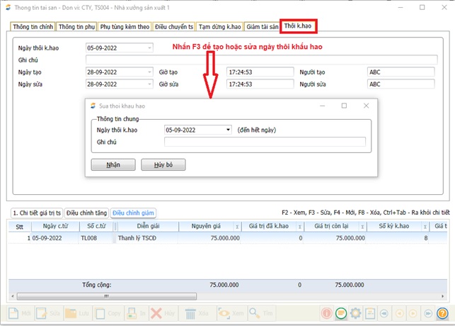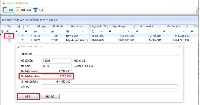 • Nhấn “Nhận” để chương trình tự tính “Khấu hao chi tiết”
