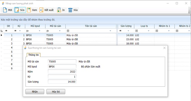 2. Vào đường dẫn: Kế toán quản trị\Tài sản cố định\ Sản lượng