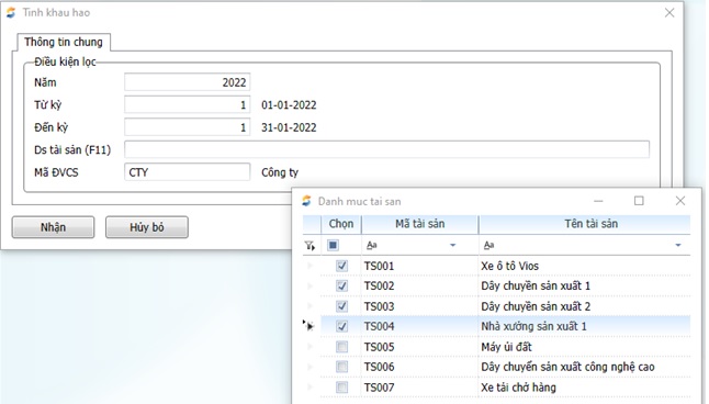 1. Chọn kỳ cần tính khấu hao