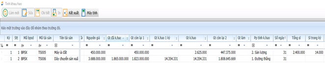 2.7.3.1 Báo cáo khấu hao tài sản