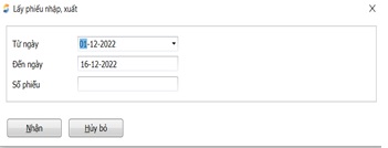 Chọn phiếu | NSD nhấn lựa chọn khung thời gian lấy dữ liệu